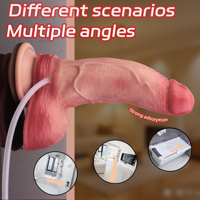 Simulierte Ejakulation: Der Dildo verfügt über einen internen tank und einen pumpmechanismus. Sie können den Dildo vorab mit Wasser, fake cum oder einem realistischen Sperma-Ersatz füllen und auf Knopfdruck oder durch Drücken des Balgs eine realistische Ladung abgeben.