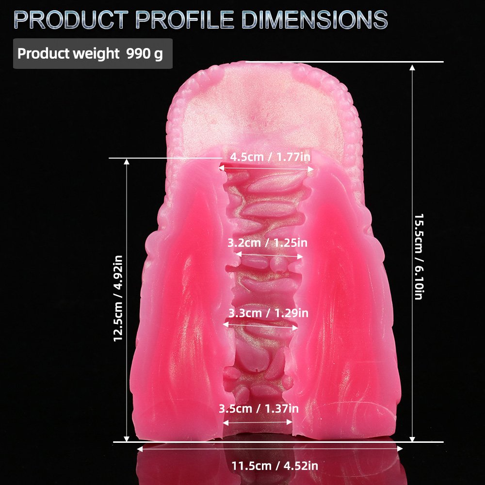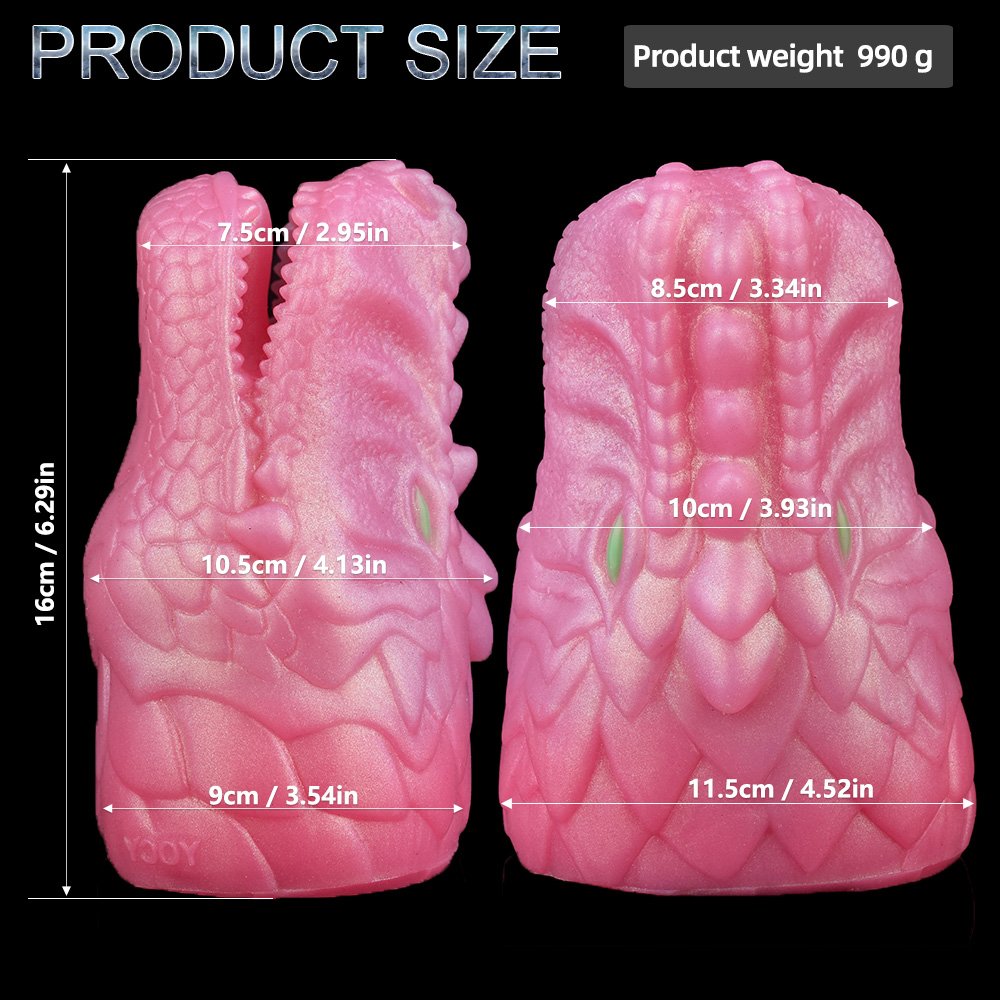 Im Gegensatz zu herkömmlichen handjob-Produkten ist dieses Modell mit einem aggressiven, weit geöffneten Drachenmaul modelliert – gespitzte Lippen, eine subtil eingerollte Zunge, als wolle sie dich verschlingen. Die Kopfform dient nicht nur dem Look – sie rahmt das Erlebnis mit dominanten Machtspiel-Vibes ein, perfekt für unterwürfige Rollenspiele oder das Umkehren klassischer Dominanzdynamiken.