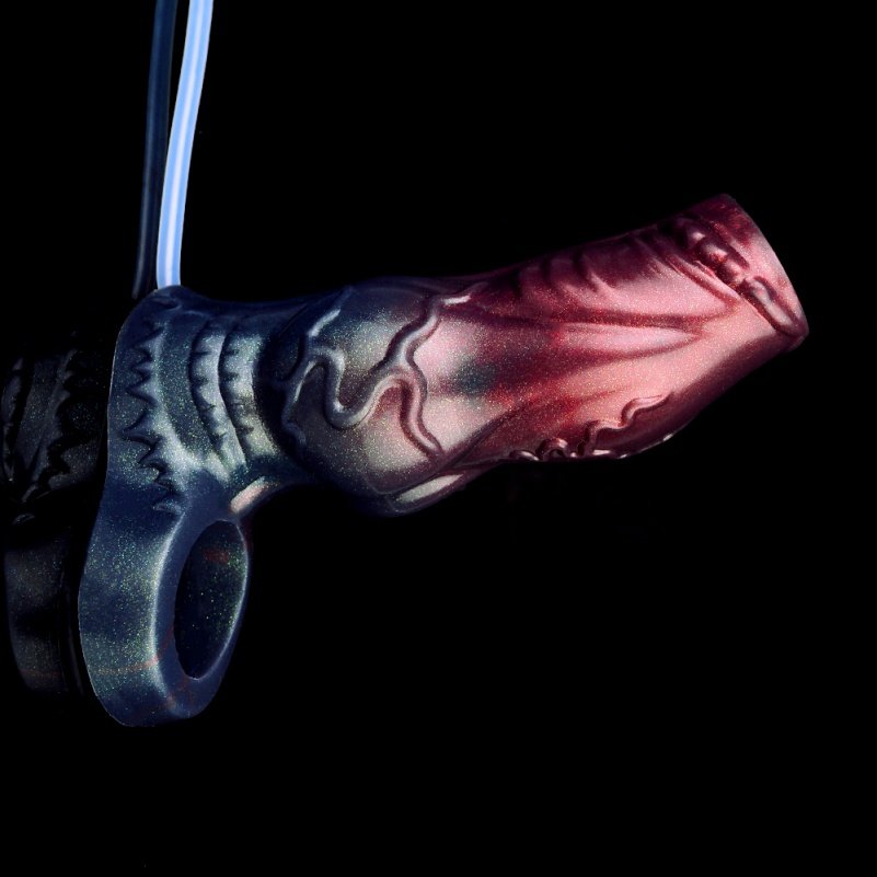 • Hyperrealistische Textur: Die Oberfläche des Penissleeve ist mit einer detaillierten „Drachenhaut“- oder „Rüstungs“-Textur versehen, die visuell beeindruckend und haptisch stimulierend ist.