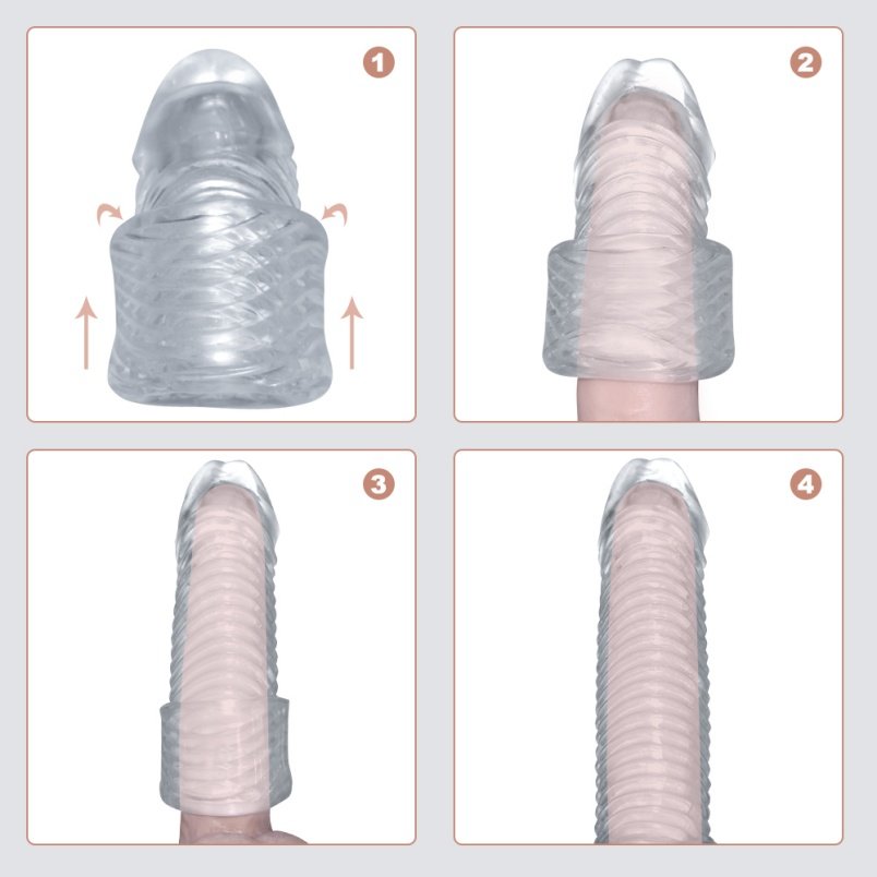 • Verzögerung für längeres Vergnügen: Als willkommener Nebeneffekt desensibilisiert die Hülle den Penis leicht, was zu einer längeren Ausdauer und einem verzögerten Höhepunkt führt. Sagen Sie vorzeitiger Ejakulation den Kampf an.