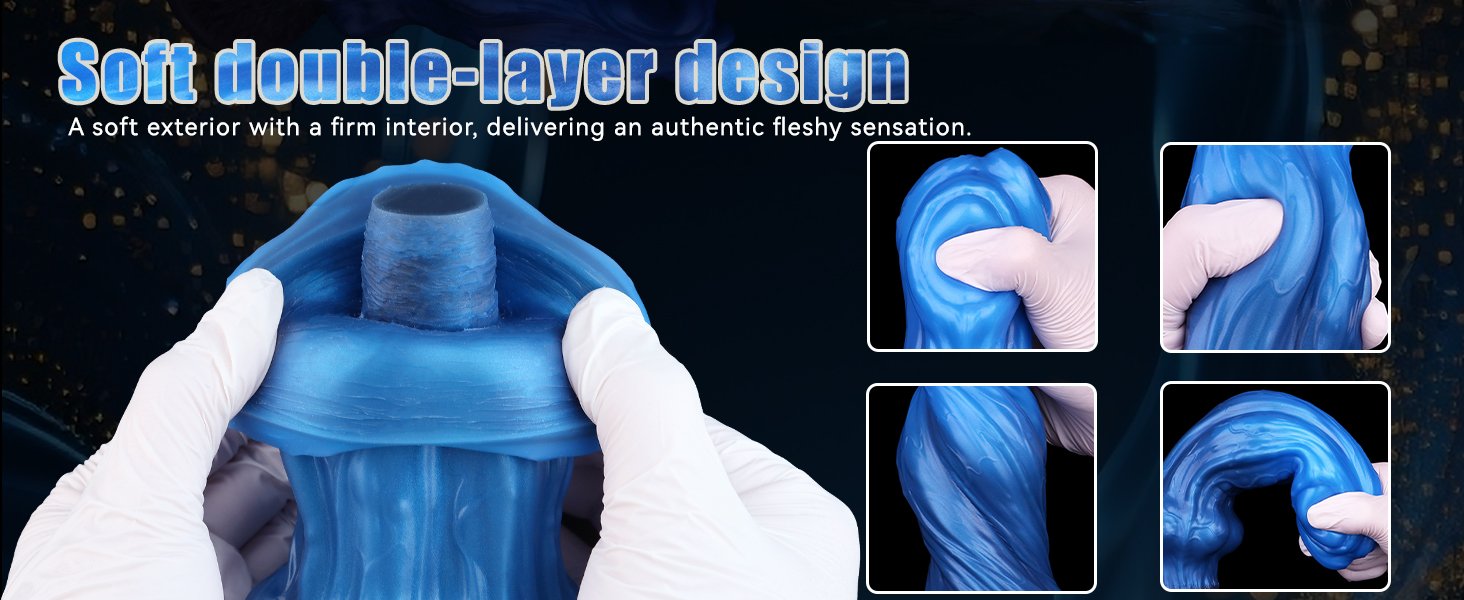 - Außen Weich: Die äußere Schicht besteht aus weicherem Silikon, das ein angenehmes, fleischähnliches Gefühl vermittelt und den Einstieg (Einführen) sanfter gestaltet.