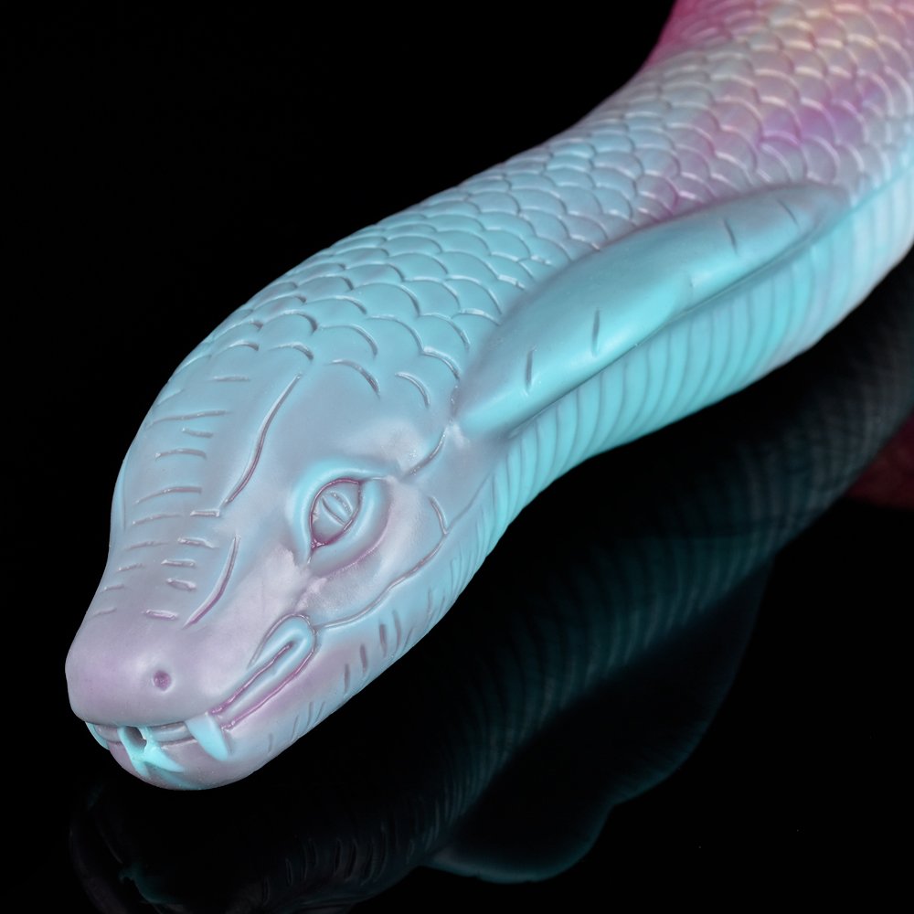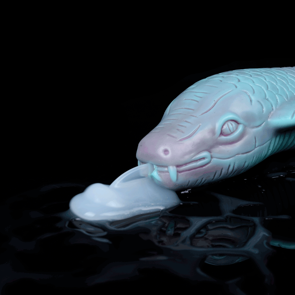 Tauchen Sie ein in einen sanft beleuchteten Raum, während der schimmernde, Bad Dragon inspirierte Dildo mit einer überirdischen Anziehungskraft leuchtet. Während Sie Ihre Finger entlang der Konturen seines gewundenen, schlangenartigen Schwanzes gleiten lassen, wächst die Vorfreude – es ist ein Teaser, der eine Reise tiefer, intensiver Befriedigung verspricht. Der Schwanz des Drachen windet sich umher, neckt und verführt bei jeder Bewegung, sodass jeder Moment wie das Entschlüsseln der ultimativen Fantasie wirkt.