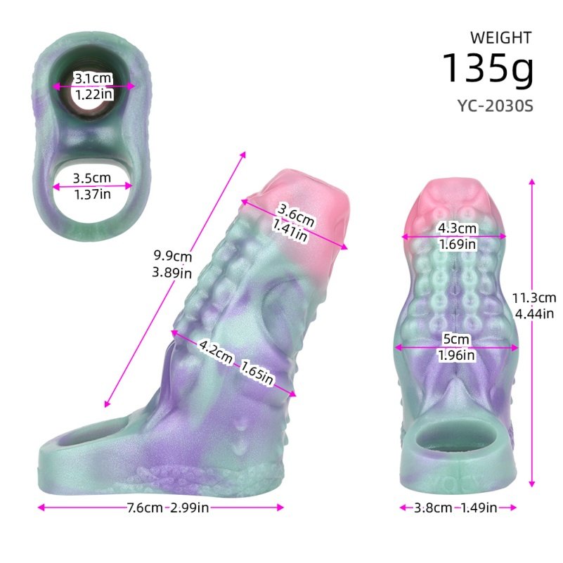 - Vergrößerung und Verlängerung: Mit diesem Sleeve gewinnen Sie im Durchschnitt 1-1.5 Zentimeter an Umfang (0.39-0.59 inches) und bis zu 7 Zentimeter (2.75 inches) an Länge. Auch für einen Mikropenis oder bei Erektionsproblemen ist dies die ideale Lösung, um das Selbstvertrauen zu stärken und die Partnerschaft neu zu beleben. Die feste, aber flexible Silikonstruktur sorgt für eine beeindruckende optische und funktionale Vergrößerung.