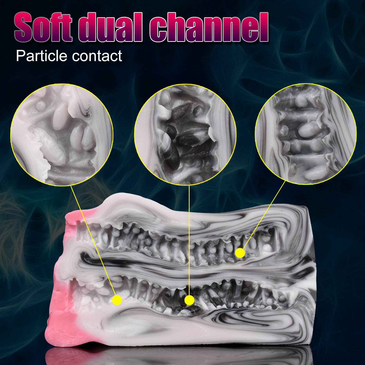 Entscheidest du dich für den Wechsel zur anderen Seite, erwartet dich ein Kanal mit dynamischem, körnigem Raster. Jedes einzelne Partikel wirkt wie ein präziser Reizpunkt, der gezielt jeden Nerv stimuliert. Mit zunehmendem Eindringen offenbart sich die fein abgestufte Struktur der Partikel: ein perfekt ausbalanciertes Zusammenspiel von Komfort und intensiver Stimulation auf unterschiedlichen Tiefenebenen.