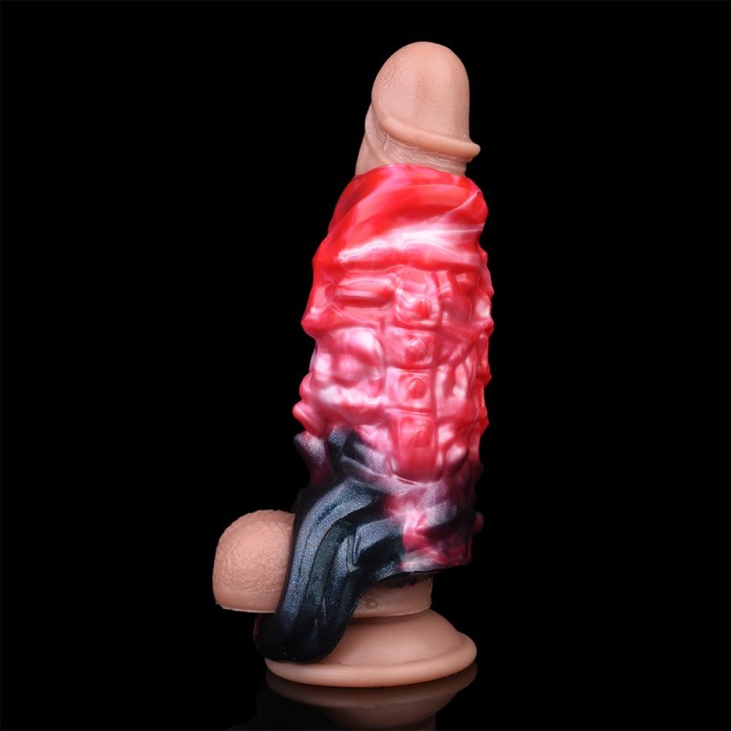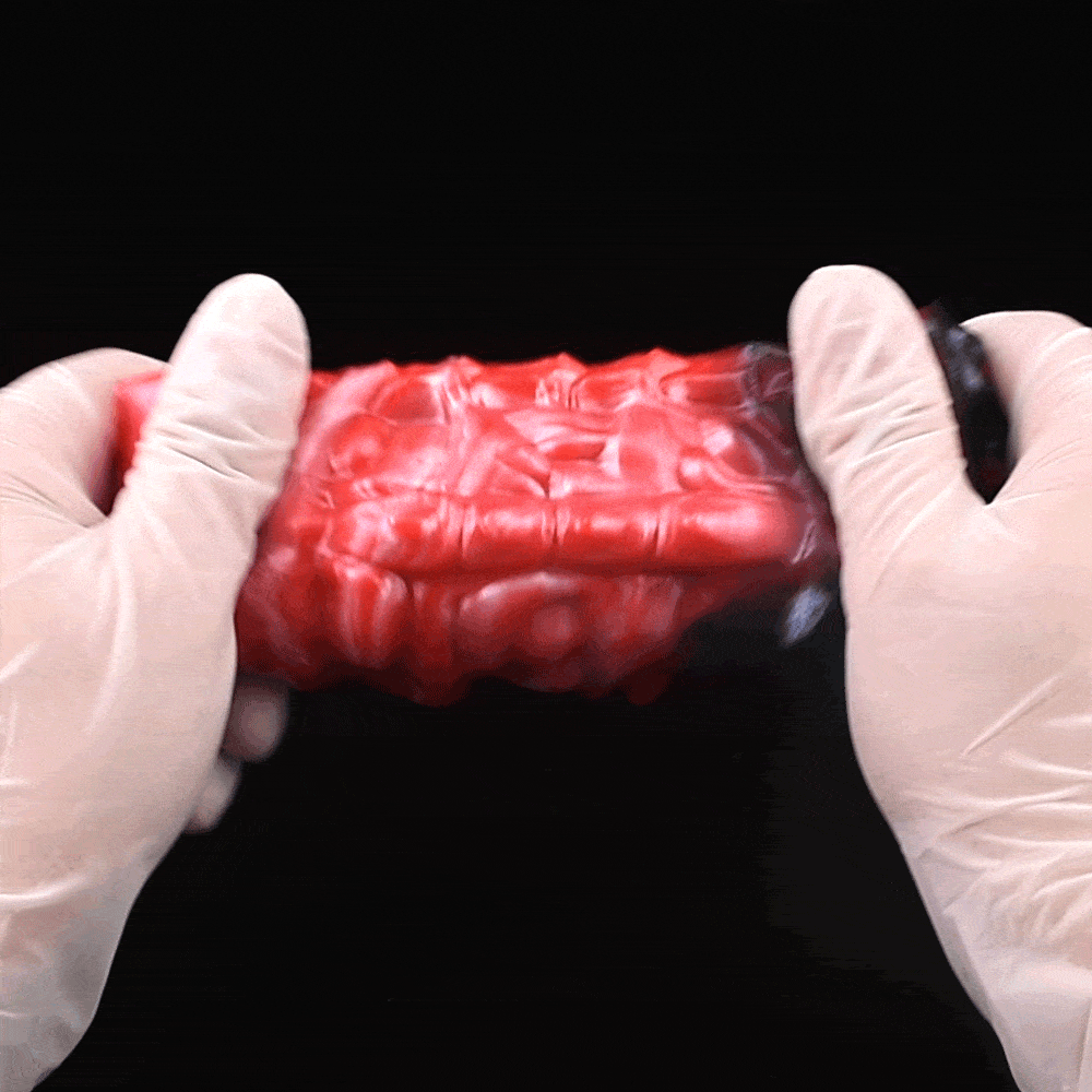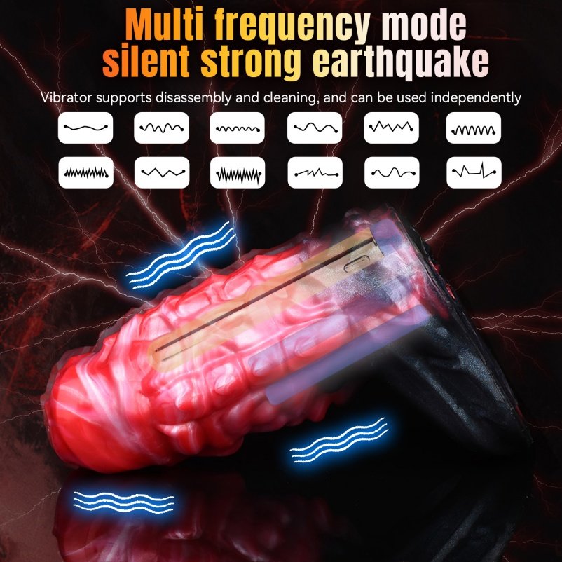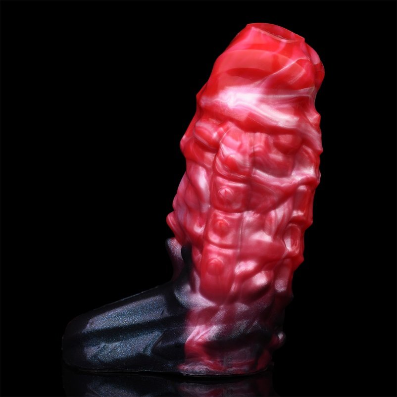 Monster fantasy vibrations vaginapenis aus blutrotem silikon kombiniert innovative vibrations technologie mit einem speziellen hodenfixierungsring, um das sexuelle Erlebnis auf eine neue Ebene zu heben. Der Fixierungsmechanismus sorgt für eine stärkere Erektion und verbessert die ausdauer während die vibration intensivere stimulationen ermöglicht.