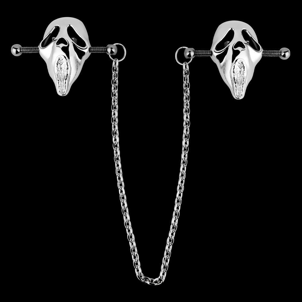 Gefertigt hauptsächlich aus hochglänzendem Metall, betont das Set eine industrielle Optik mit dunkler, verführerischer Ästhetik. Das von Totenköpfen inspirierte Design, kombiniert mit filigranen Kettendetails, ruft eine Atmosphäre von Geheimnis, Gefahr und verbotenem Symbolismus hervor. Perfekt für Liebhaber der Gothic-, Punk- oder alternativen Subkulturen verstärken diese nippelpiercings sowohl die visuelle als auch die sensorische Dimension des BDSM-Spiels.