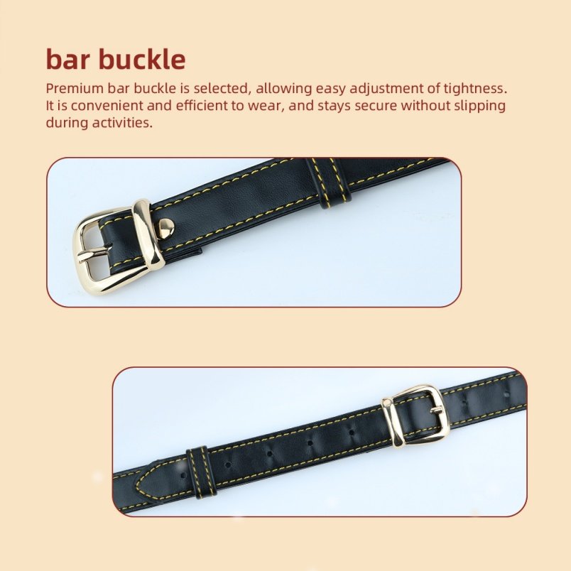 • Verstellbares Ledergeschirr: Der Hauptriemen ist aus flexiblem, langlebigem Leder gefertigt und kann mithilfe einer Metallschnalle individuell eingestellt werden.